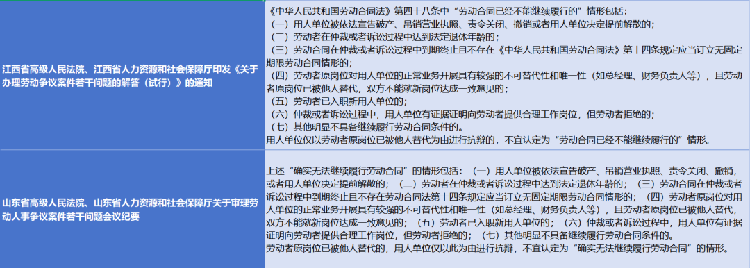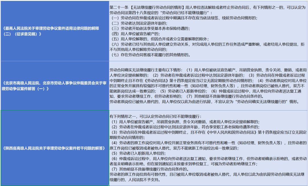 二、哪些情形仲裁委或法院会认定劳动合同已经不能继续履行?